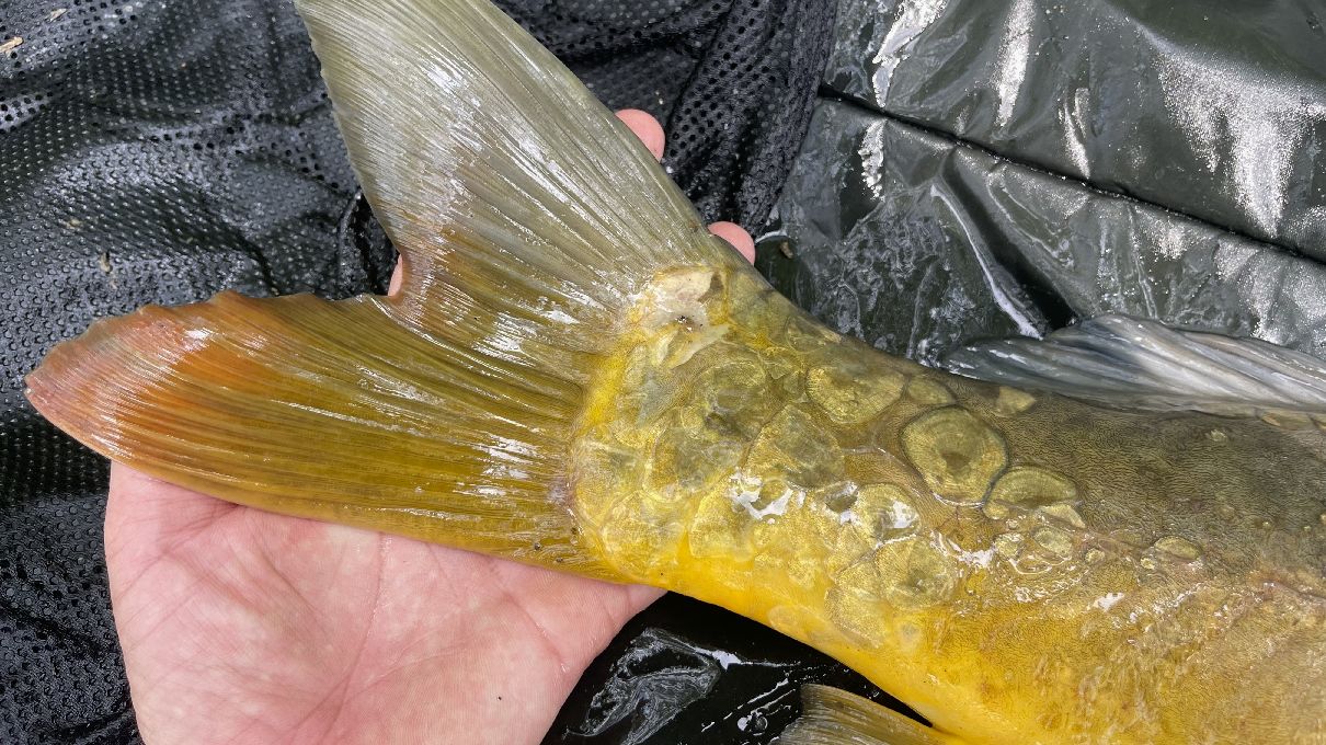 V tu chvíli si rybář neužívá jen krásné barvy na stromech, ale i nádherně zbarvené ryby