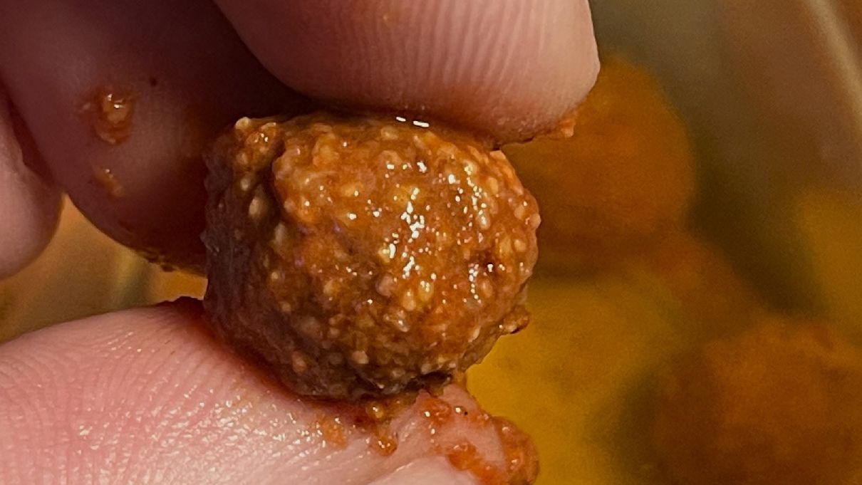 I když je kulička dlouhodobě naložená v dipu, přesto její střed je krásně tuhý