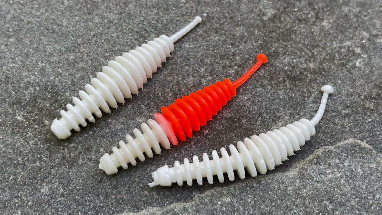 Jestli mám prozradit některé oblíbené typy nástrah na pstruhy, tak se jedná třeba o „vroubkované larvy“ ve tvaru soudku s jemným ocáskem. Právě tento typ nástrahy nabízí hned několik předností.