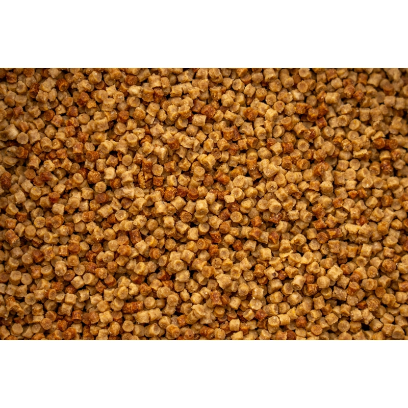 Nejnovější pelety z rybí moučky typu „Skretting“, které se rychle rozkládají a snadno vstřebávají.