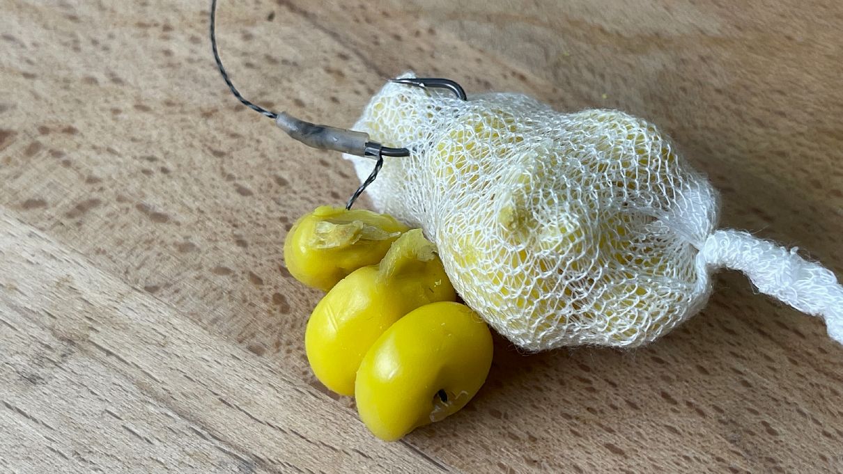 Dalším způsobem je potom do PVA punčochy přidat nějaké lákavé krmení, které po rozpuštění PVA materiálu bude přímo u obří kukuřice. Typicky můžeme použít osušená zrníčka kukuřice, která nerozpustí PVA materiál, ale například i kukuřičné pelety.