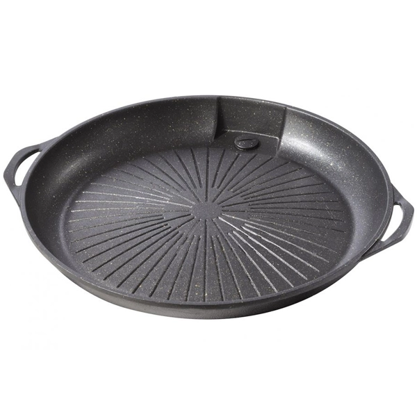 Hliníková grilovací deska s nepřilnavým povrchem, otvor pro odtok tuku.