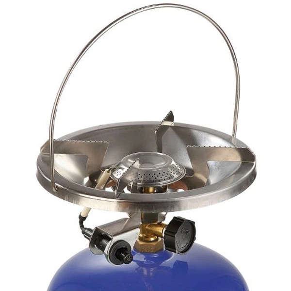Jednoplotýnkový vysokotlaký vařič pro přímé připojení ke 2 kg propan-butanové lahvi.