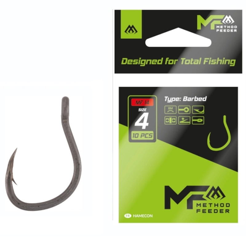 MF14 jsou nové zesílené háčky určené pro lov velkých ryb formou method, bomb nebo pellet wagglerem.