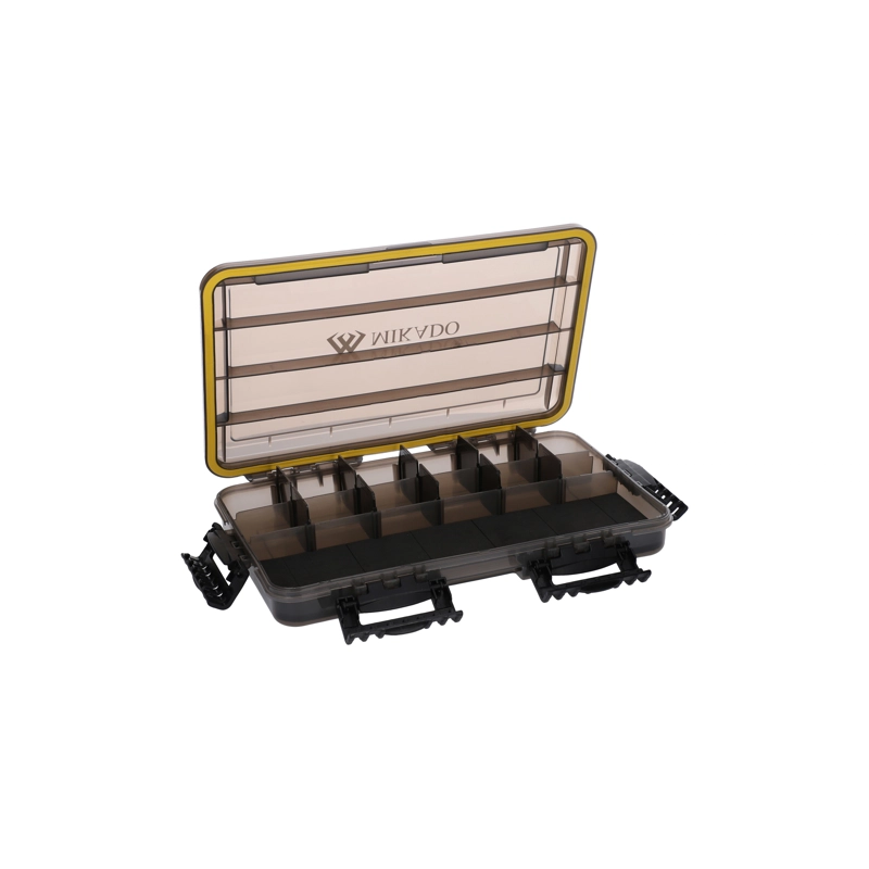 Jednostranné, 100% vodotěsné, černé rybářské krabičky s těsněními. Dolní oddíly byly vybaveny speciálně vyříznutou pěnou. Mají také klasické nastavitelné přihrádky bez pěny pro uložení nejrůznějších nástrah.