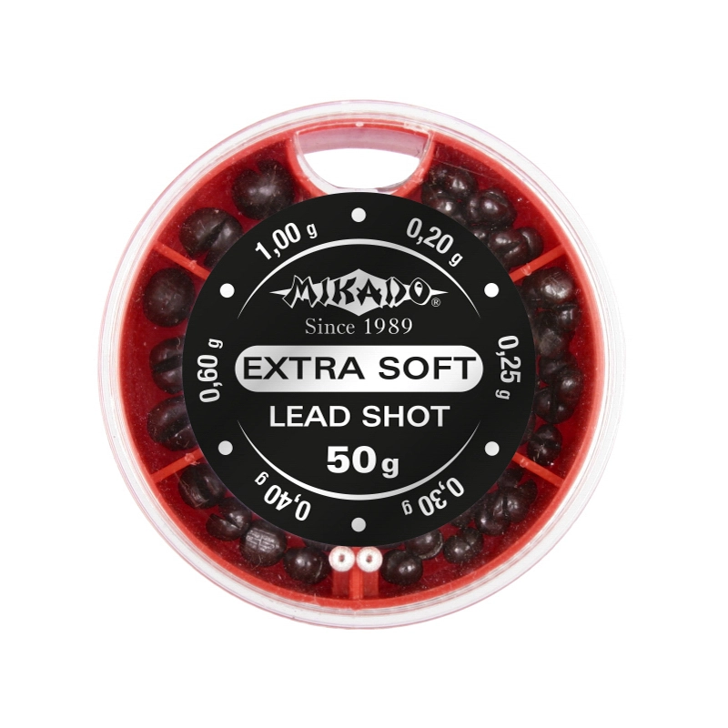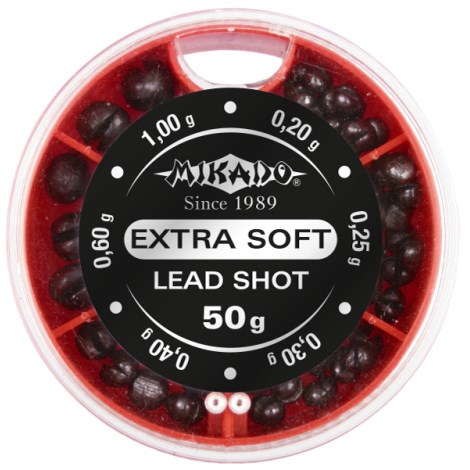 Malé a měkké olověné bročky Extra Soft A 50 g ve tvaru naseknuté kuličky, prakticky balené pro snadné dovažování splávků.