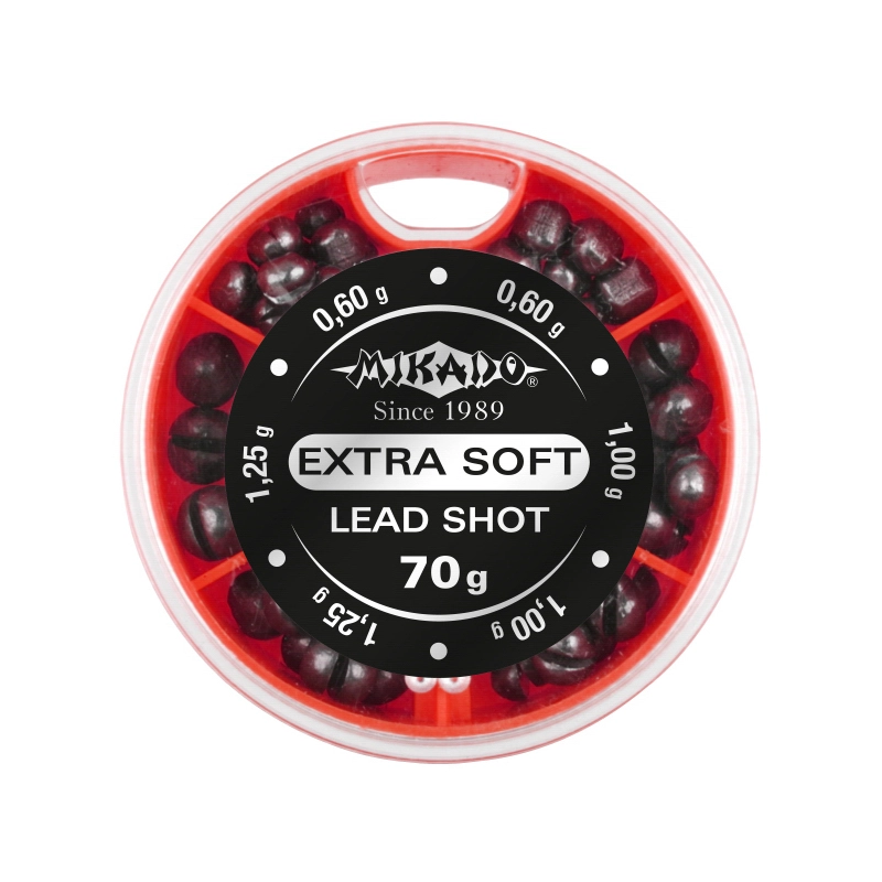 Malé a měkké olověné bročky Extra Soft B 70 g ve tvaru naseknuté kuličky, prakticky balené pro snadné dovažování splávků.
