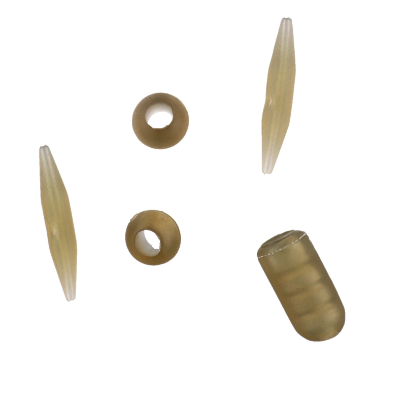 • Obsahuje gumové zarážky na leader nebo leadcore, blokovací korálky a krytku na obratlík u zátěže.