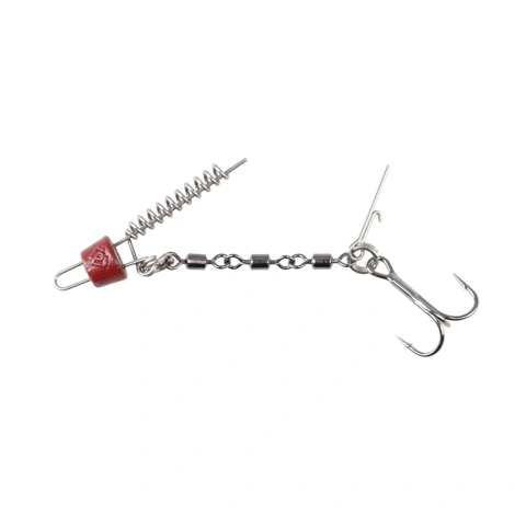 Moderní stinger systém se zavrtavacím šroubem, vyrobený z obratlíků, který umožňuje velmi pevné spojení. Další výhodou je možnost změnit váhu nástrahy bez její zničení.