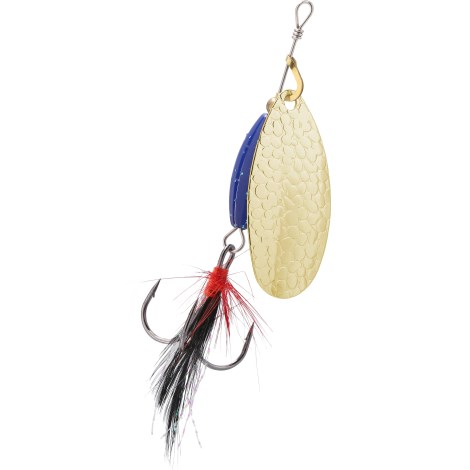 Rotační třpytka M-Grub ve velikosti 3 ve variantě Zlatá Blue Knight disponuje širokým křidélkem. Vyznačuje se těžkým, barveným tělem.