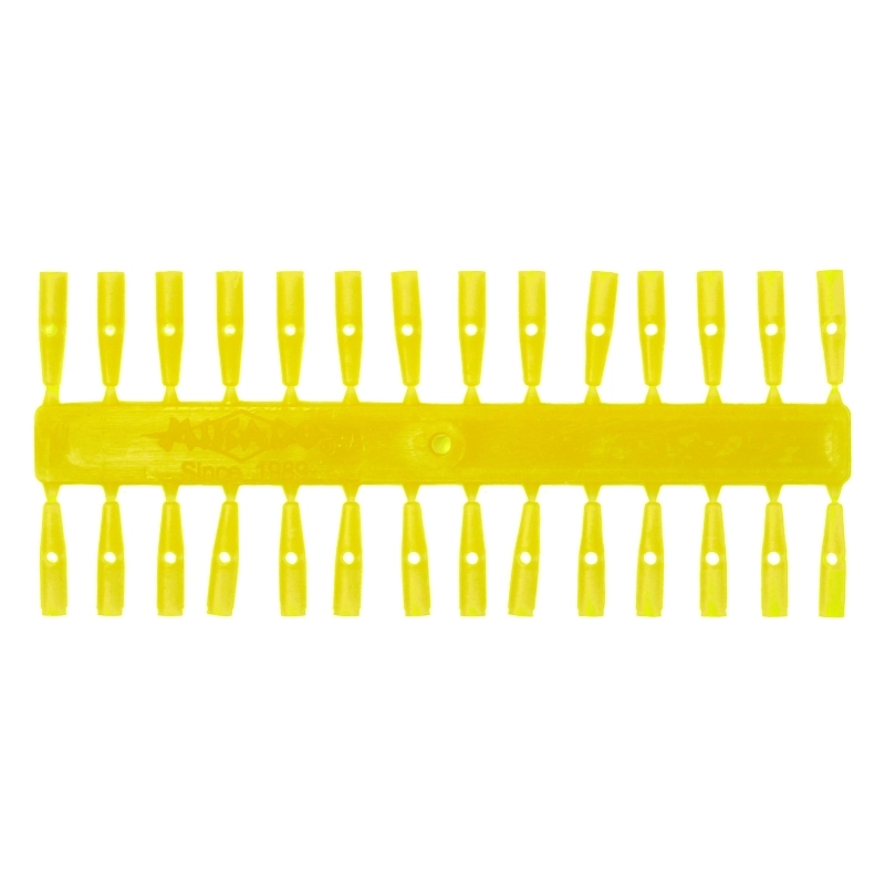 Žluté stopery usnadňující navlékání nástrahy na vlasec a umožňující rychlou změnu typu.