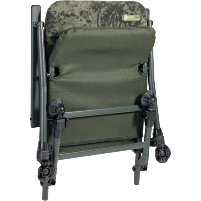Set kompaktního křesla CamoCODE Express s teleskopickými nohami a transportní taškou nabízí stabilitu, pohodlí a snadné přenášení i do hůře přístupných míst.