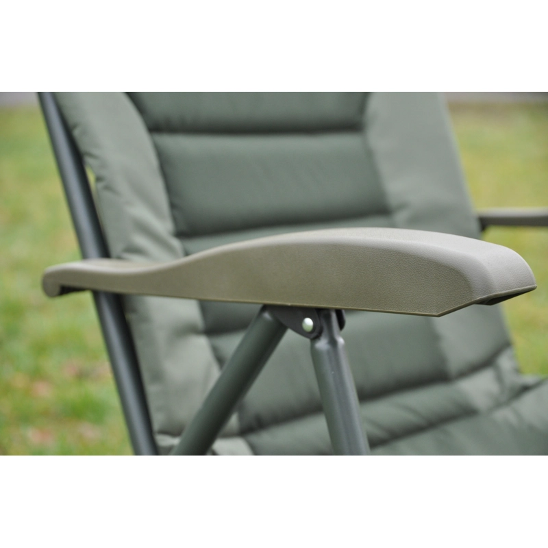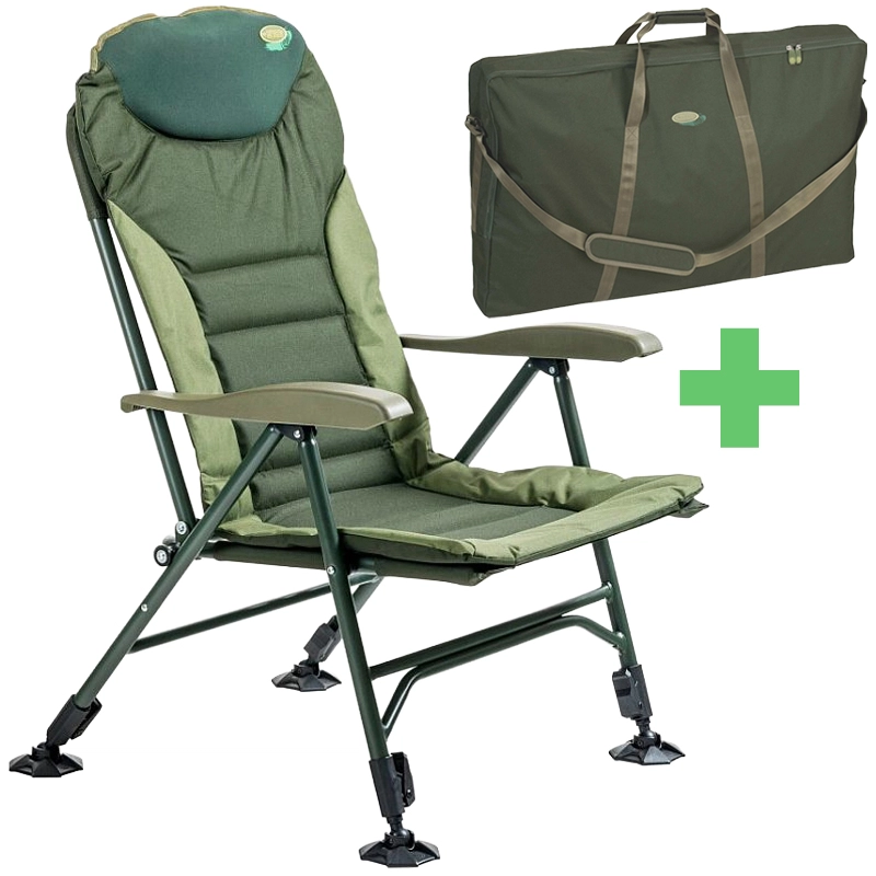 Je vybaveno anatomicky tvarovaným opěradlem a silně polstrovaným neoprenovým polštářem. Všechny čtyři nohy jsou teleskopické, vybaveny spolehlivou aretací a velkými patkami proti zaboření. Díky tomu je ideální do jakýchkoli podmínek, včetně nerovného povrchu. Konstrukce je stabilní, překvapivě lehká a velmi pevná – nosnost až 160 kg. Křeslo nabízí pohodlný systém naklápění opěradla při nadzvednutí opěrek na ruce