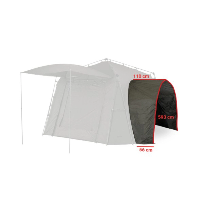 Tato manžeta slouží k připojení libovolného bivaku, přístřešku či brolly k přístřešku Base Camp Xtreme XXL bez ohledu na jejich tvar a výrobce. Jediným limitem je výška a šířka připojovaného bivaku, která by neměla výrazně přesahovat výšku a šířku boční stěny přístřešku Base Camp Xtreme XXL. Tuto manžetu snadno připevníte k bočním stěnám přístřešku Base Camp Xtreme XXL po odepnutí jeho boční nebo zadní stěny. Připojovaný bivak jednoduše postavíte těsně vedle přístřešku Base Camp Xtreme XXL a manžetu pomocí kotvící šňůry utáhnete okolo připojeného bivaku. Manžeta zajistí, že přechod mezi přístřeškem Base Camp Xtreme XXL a připojeným bivakem bude chráněn před deštěm i větrem. Součástí sady jsou i dvě doplňkové kotvící šňůry. Ty jsou určeny k upnutí do kotvících smyček na okraji manžety, napínají ji a brání jejímu sklouznutí z připojeného bivaku i během silného větru.