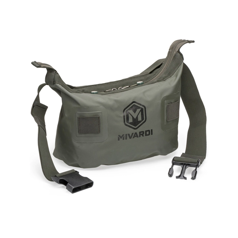 Uzavíratelná vodotěsná ledvinka s širokým, délkově nastavitelným popruhem a masivní přezkou.