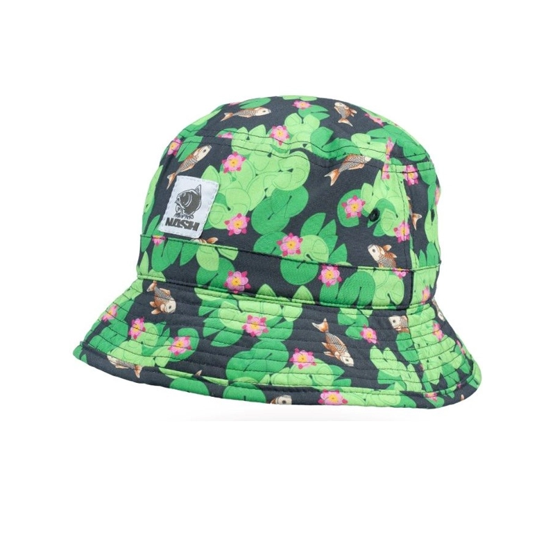 Zdobí ho motiv kapra mezi lekníny a tkaná nášivka Nash.