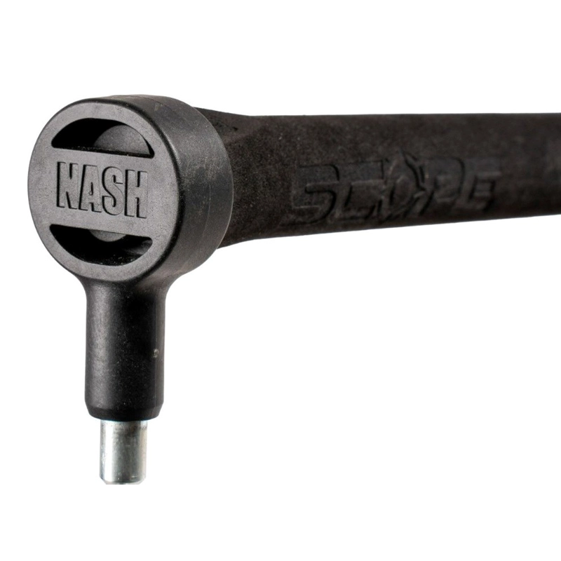Elegantní karbonová sedla navijáku s gravírovaným logem Nash a plochým úchopem pro palec