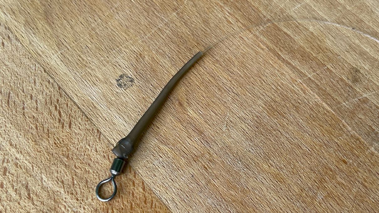 A nakonec na volný návazec navážeme obratlík s velkým očkem, který nám zajistí tu nejlepší funkčnost návazce D-Rig. S pomocí velkého kroužku potom návazec snadno připevníme k montáži na kapry – v nejčastějším případě se jedná o helikoptérovou montáž.