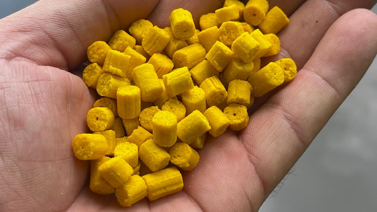 (Některé) kukuřičné pelety pak mají další „silnou zbraň“, kterou „převzaly“ přímo od kukuřice – nápadně žluté zbarvení. A právě výrazná žlutá barva rybáři slibuje, že pelety půjdou skvěle vidět jak na zaneseném, tak i zarostlém dně.