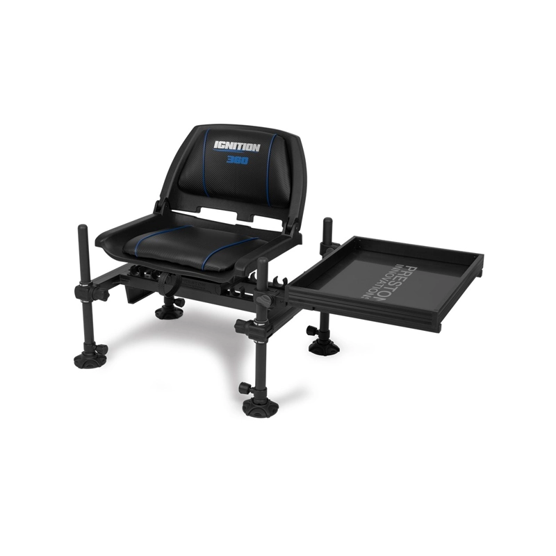Lehká bedna Ignition 360 je vybavena sedadlem otočným o 360 stupňů a čtyřmi teleskopickými nohami.