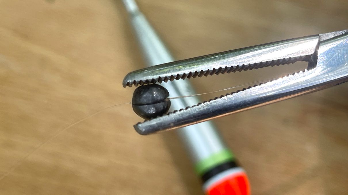 Po navléknutí průběžného splávku nacvakneme na vlasec broky