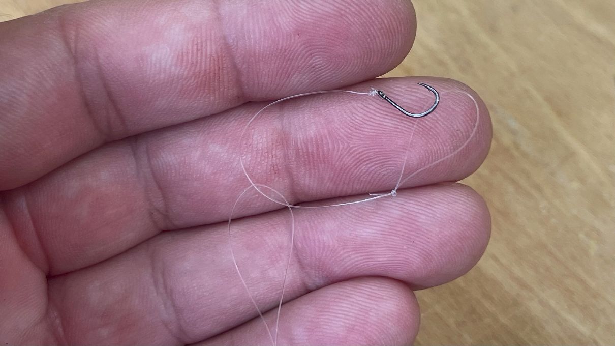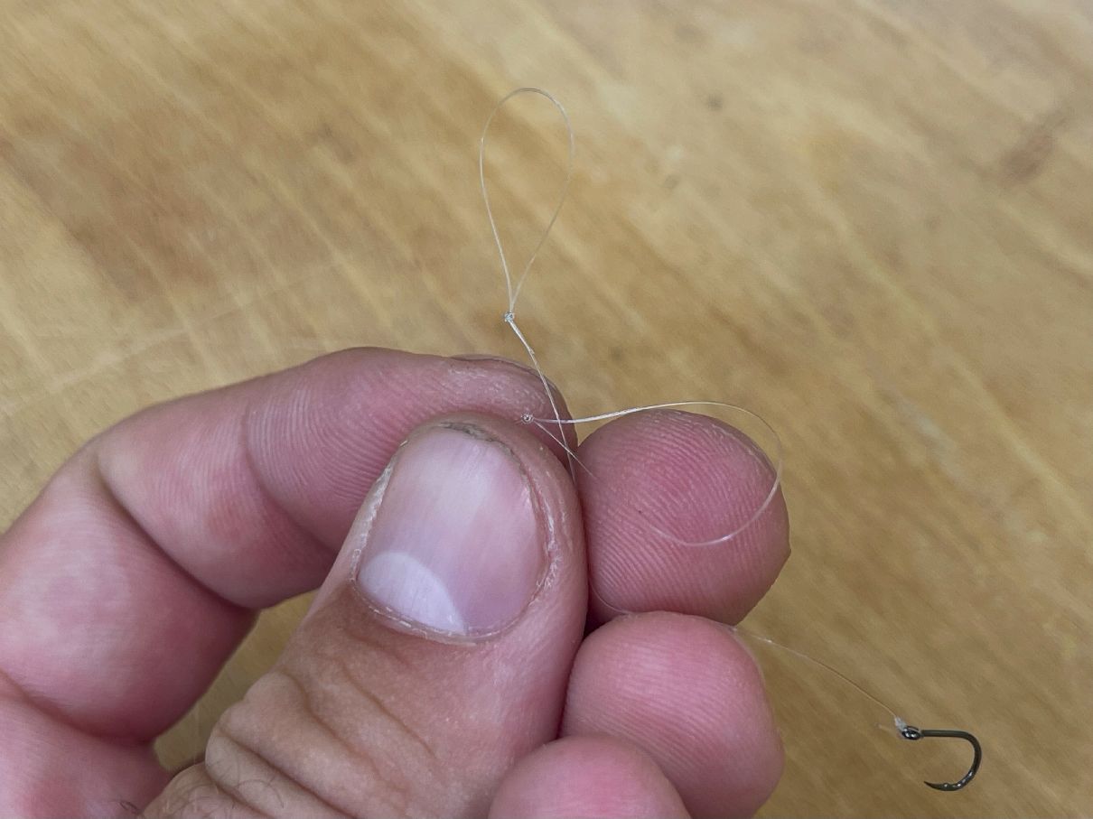 Poté smyčkou na návazci provléknu háček, a následně celý návazec utáhnu...