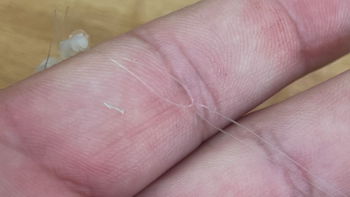 Jak dostat zarážku na vlasec? Konec kmenového vlasce protáhneme očkem na silikonových zarážkách, a poté...