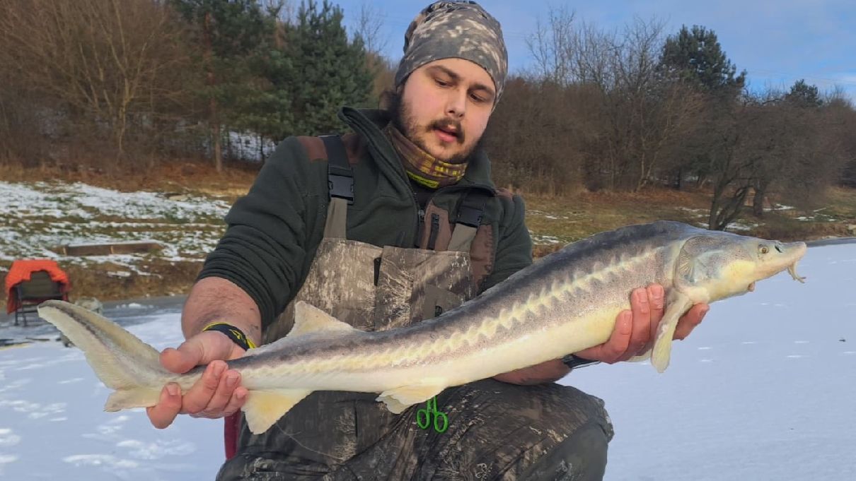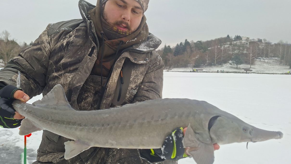 S tužším prutem na dírky můžeme chytit i takto velkého jesetera...