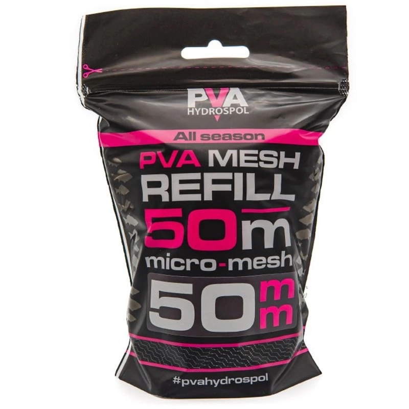 Hustý micro-mesh materiál All Season punčochy je vhodný pro plnění jemnými návnadovými směsmi, drceným boiliesem i drobnými peletami, aniž by obsah propadával skrz úplet. Náhradní PVA punčocha slouží k doplnění PVA materiálu na plnící tubus. Varianta 50 mm je pletená z 36 kvalitních PVA vláken. Výhodné balení 50 m je dodáváno v uzavíratelném zip sáčku, který chrání materiál před navlhnutím a usnadňuje skladování i opakované používání během rybolovu. Rychlost rozpouštění závisí na teplotě vody. Řada All Season je vhodná pro celoroční použití v teplé i studené vodě. Použité návnady nesmí obsahovat vodu, protože při kontaktu s ní dochází k postupnému rozpouštění materiálu. Dlouhodobé dipování předem může způsobit zakonzervování vláken, což může ovlivnit správnou rozpustnost materiálu. Délka PVA punčochy je uvedena v maximálním nataženém stavu a uvedený průměr značí doporučený průměr plnícího tubusu.
