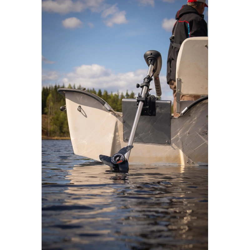 - Motor lze sklopit tlačítkem; hloubku ponoru a odpor řízení lze nastavit.