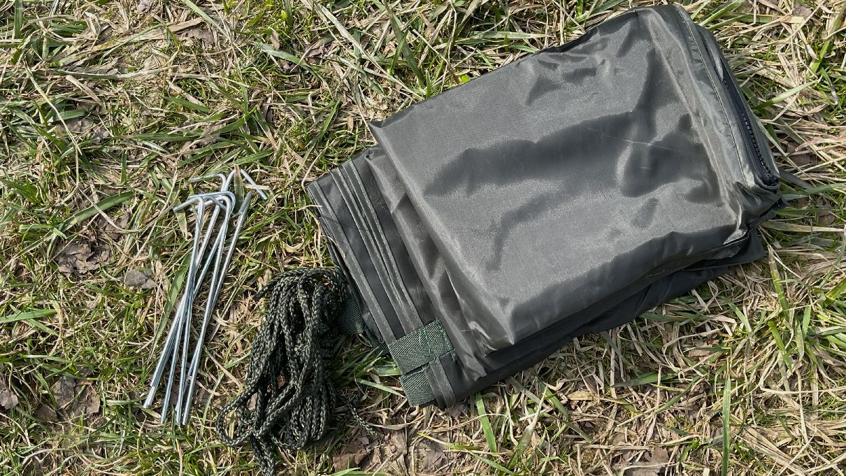 K deštníku se dodává i příslušenství - kolíky a zpevňovací lana