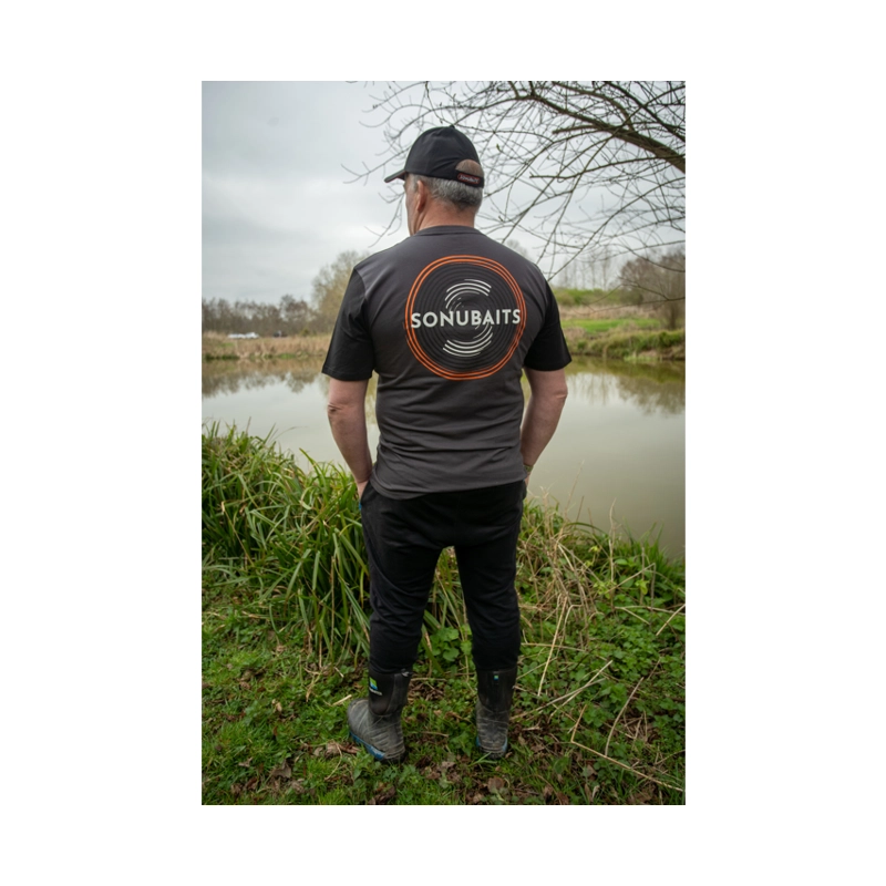 Klasické tričko v šedé barvě s logem Sonubaits, vhodné pro každodenní nošení i pobyt u vody.