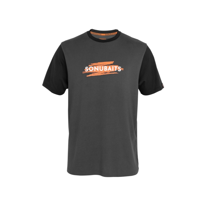 Klasické tričko v šedé barvě s logem Sonubaits, vhodné pro každodenní nošení i pobyt u vody.