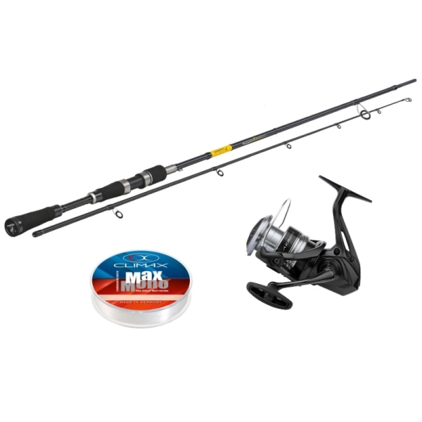 Špičkový přívlačový set prutu SPORTEX Black Pearl GT-3 2,7 m 60 g spolu s navijákem SHIMANO Aero BB C3000. Obsahuje také zelenou šňůru CLIMAX iBraid U-Light Neon 0,10 mm/135 m.