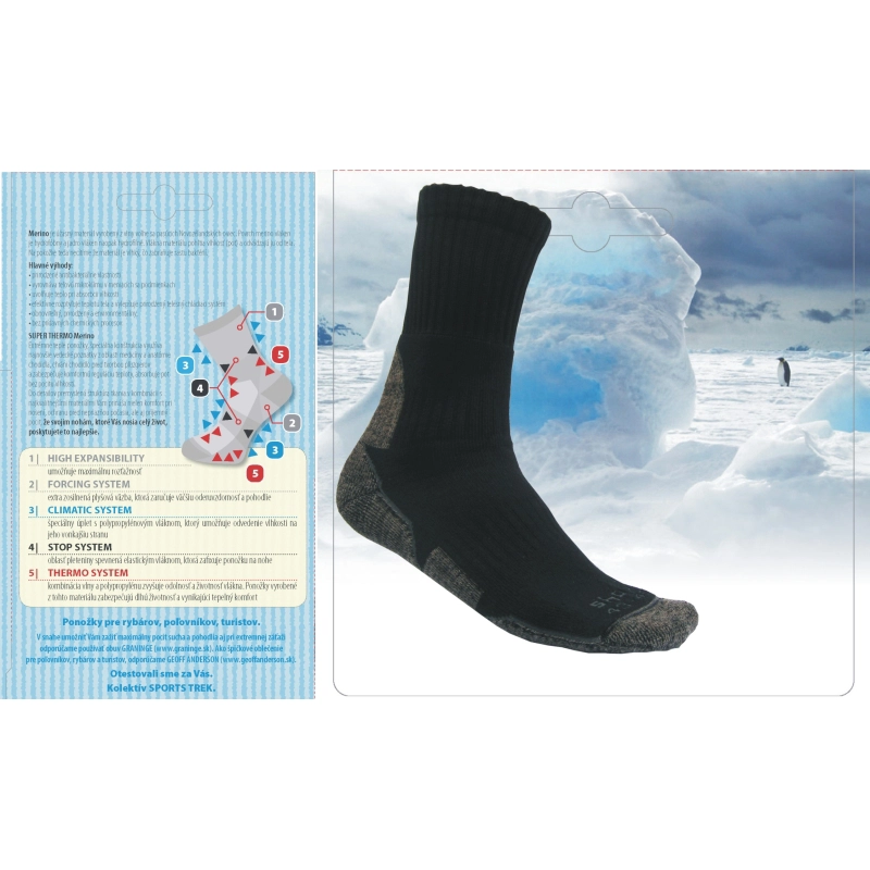 Extrémně teplé ponožky vyrobené z merina jsou určené pro rybáře, myslivce a turisty.