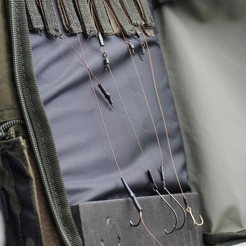 Úložný prostor na návazce – Druhá boční přihrádka je pokryta odolným povlakem proti zaháknutí a je ideální pro bezpečné uložení hotových montáží a návazců.