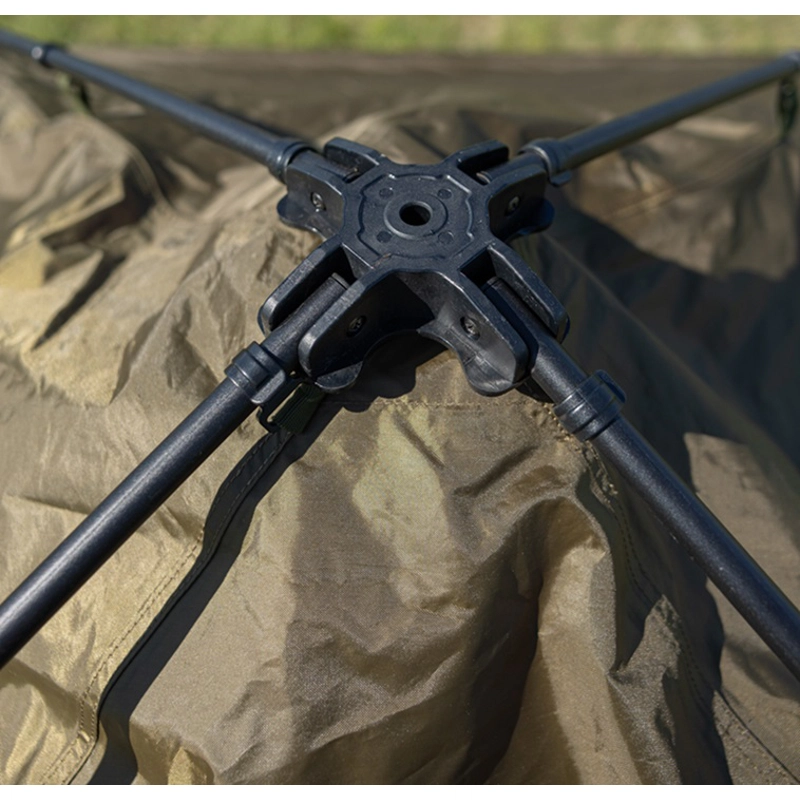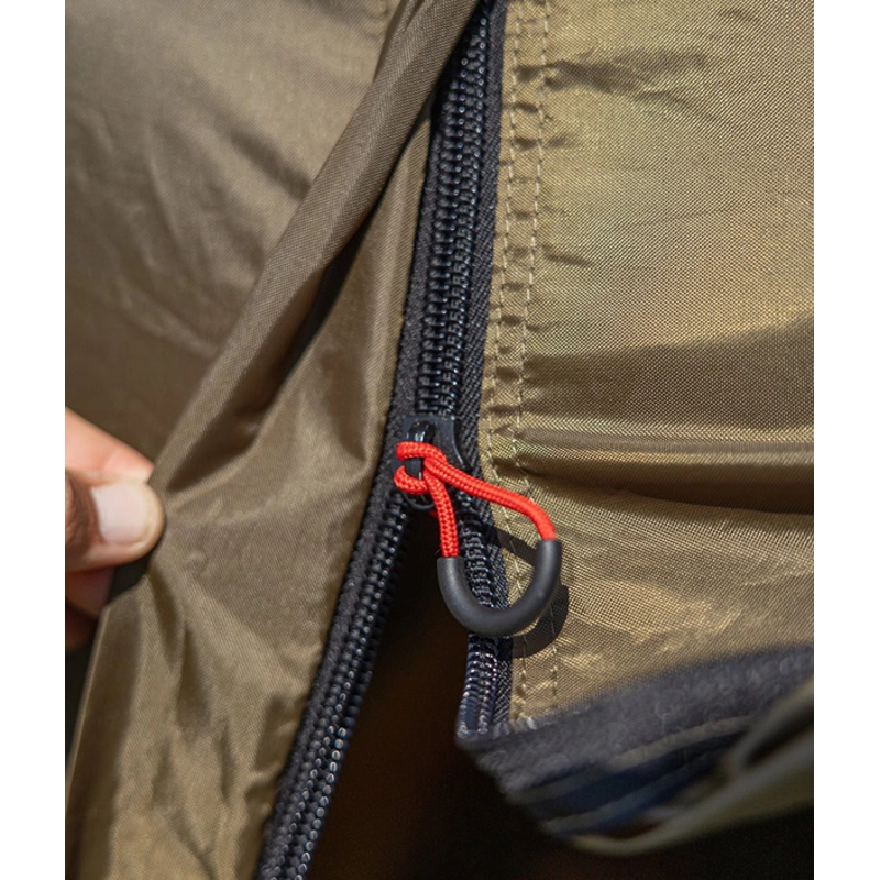 Velký bivak pro vytvoření zázemí při delších výpravách na kapry. Je vyrobený z nepromokavé silnostěnné tkaniny s integrovaným přehozem proti dešti a kondenzaci pro ještě lepší ochranu a komfort. Vodní sloupec 10000 mm a X-Strong zipy zajišťují maximální odolnost a životnost. Konstrukce je tvořena teleskopickými hliníkovými 19mm tyčemi, které umožňují snadné a rychlé sestavení i jednou osobou. Navíc snižují objem při transportu. Dvojitě zesílené patky se stabilizačními kotvícími šňůrami poskytují výbornou stabilitu i za zhoršeného počasí.