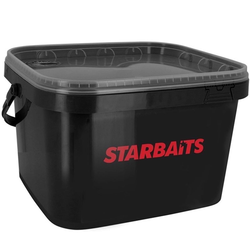 Hranatý kbelík s víkem z pevného plastu s madlem a logem Starbaits.