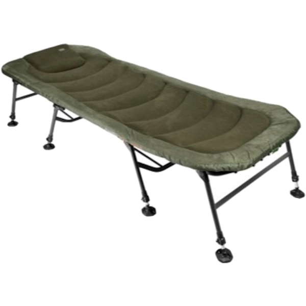 Pohodlné rybářské lehátko s osmi nohama s pevnou a robustní konstrukcí.