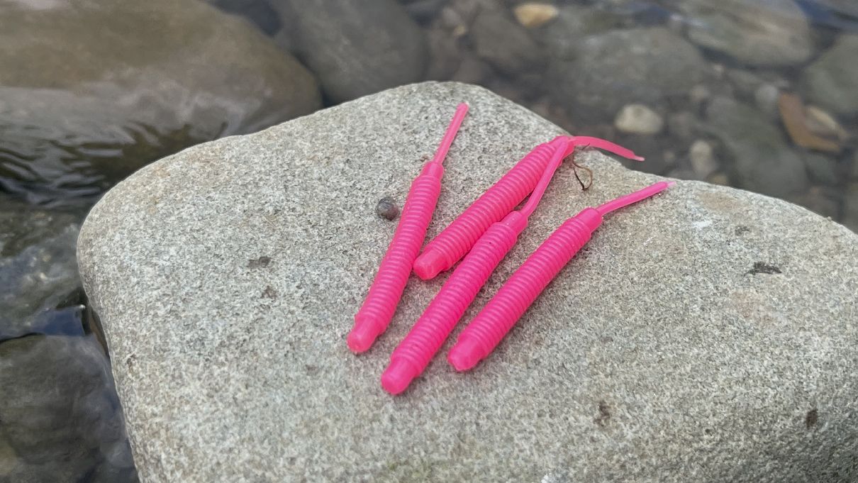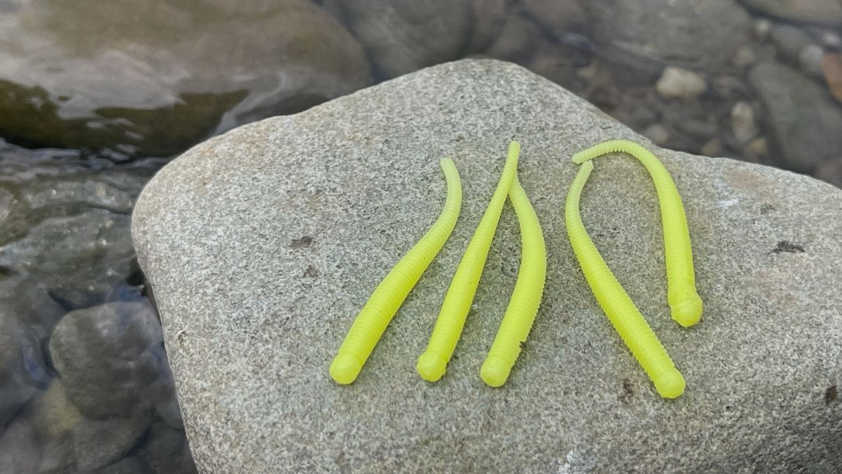 Další typ gumových červíků na ultralehkou přívlač ve výrazném zbarvení. Tyhle nástrahy skvěle fungují při horší viditelnosti