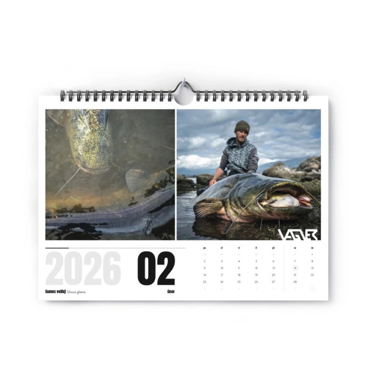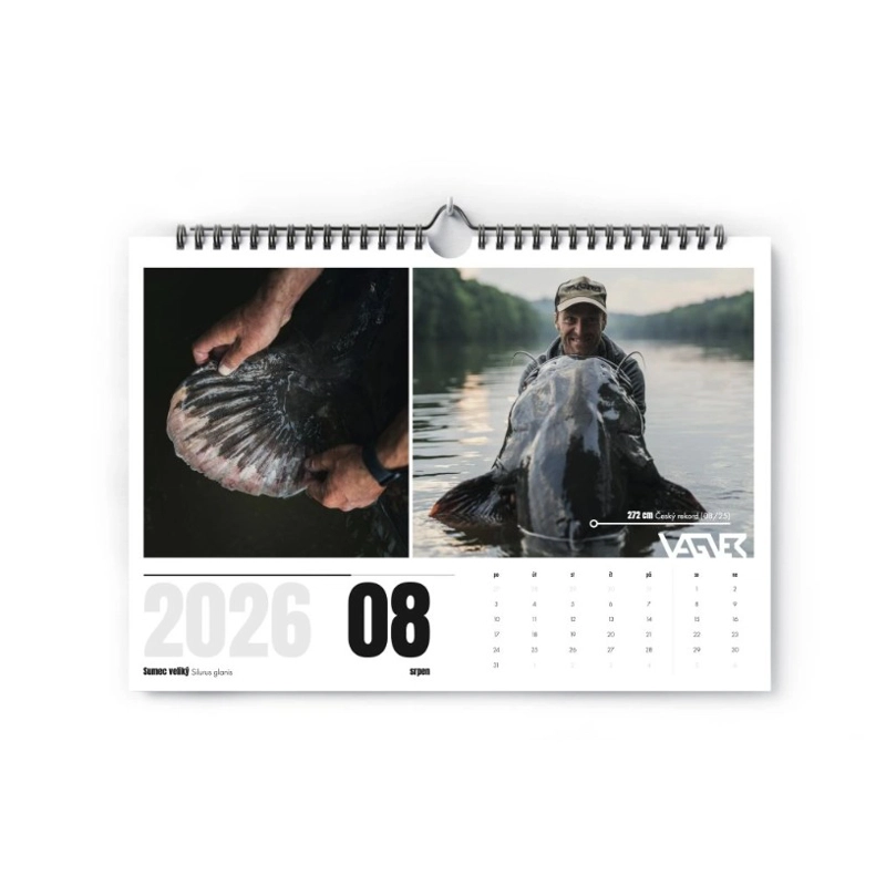 Nástěnný rybářský kalendář 2026 s úlovky Jakuba Vágnera a jeho novými českými rekordy.