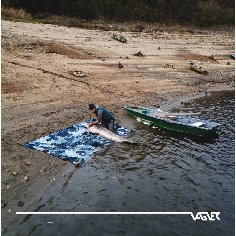 Rozměry 300x200 cm poskytují dostatek prostoru i pro trofejní kusy při vážení a focení. Podložka je vyrobena z odolné textilie s pogumováním, která chrání rybu a zároveň zabraňuje jejímu sklouznutí. Zároveň má na krajích upínací oka pro dokonalé natažení.