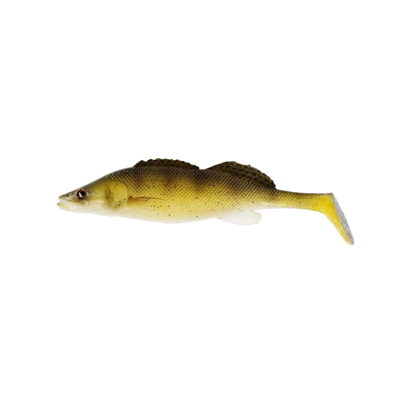 Realistická nástraha Zanderteez Shadtail ve variantě Zander o délce 17 cm napodobující candáta, která působí jako živý candát.