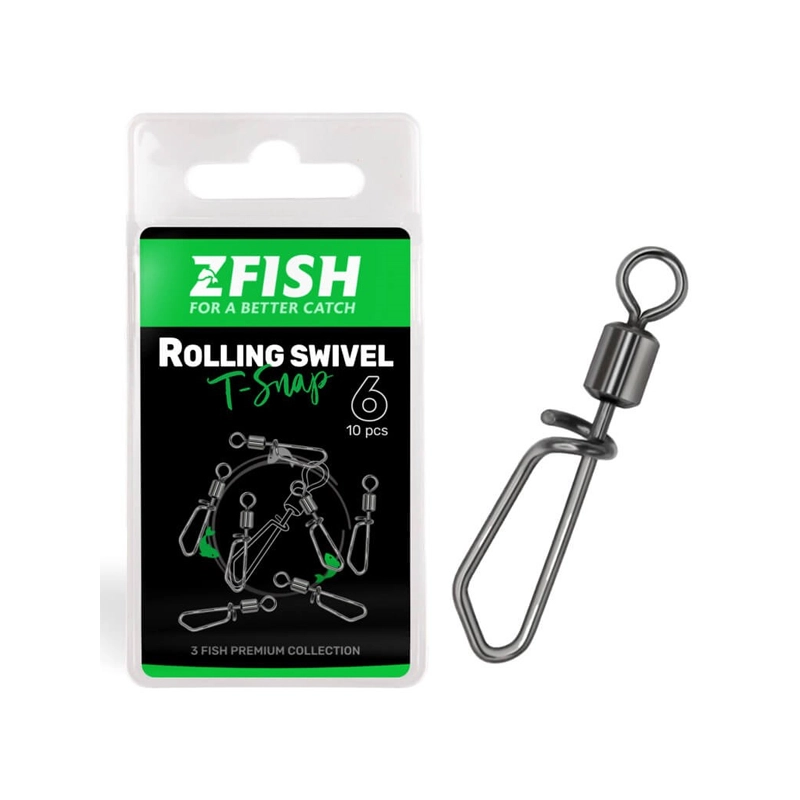 Rolling Swivel With T Snap je klasický pevnostní obratlík s karabinou.