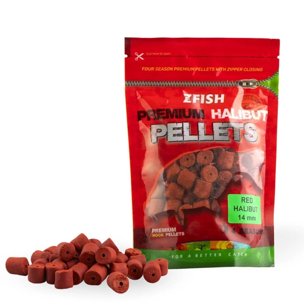 ZFISH Chytací Pelety Premium HALIBUT 14 mm jsou pelety s dírkou.