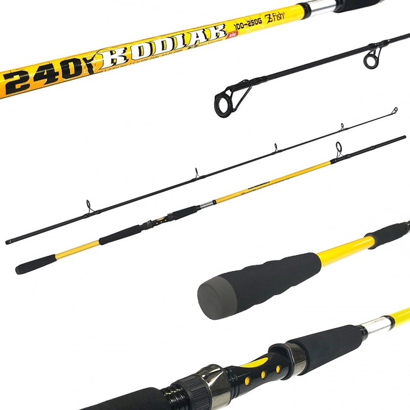 Prut Kodiak je vhodný jak pro lov sumců a štik, tak pro rybolov v Norsku. Jedná se o dvoudílný karbonový prut o délce 2,40m a vrhací zátěží 100 až 250g. Prut je relativně tenký, lehký a je osazen SIC očky. Kodiak má příjemnou dělenou rukojeť s ergonomickým úchopem. Rybáři při zdolávání jistě ocení jeho plně parabolickou akci, která zároveň zabraňuje zamotání nástrahy při náhozu.
