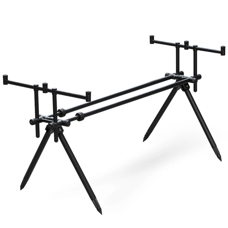 Dvojitá středová tyč umožňuje široké nastavení délky a spolu s teleskopickými nohami poskytuje maximální flexibilitu při použití na různých typech břehů. Velkou předností jsou hrazdy vybavené maticemi, které umožňují pevné zajištění hlásičů a rohatinek bez nežádoucího povolování. Nohy s vyladěným aretačním systémem, jenž zaručuje, že zvolená délka zůstane pevně fixována i při dlouhodobém zatížení.