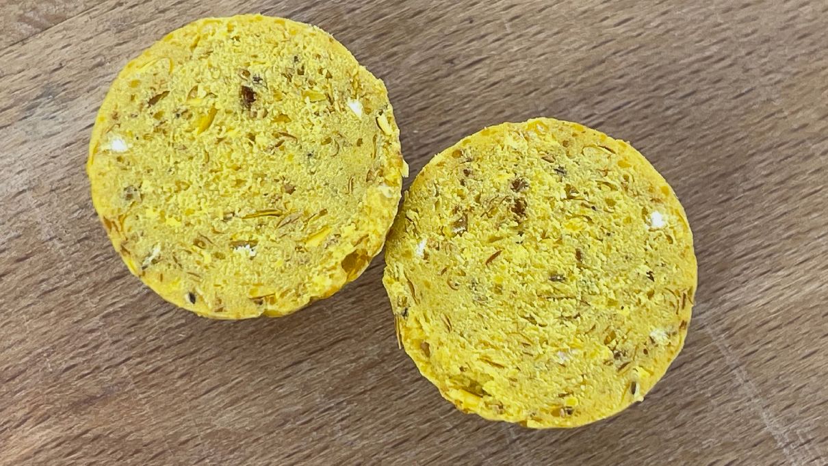 Pohled dovnitř kuličky: tady lze vidět, jak velké množství surovin boilies Criticals Corn obsahuje