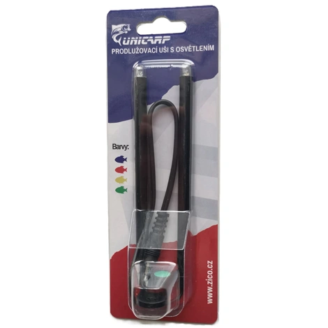 Osvětlují prostor rolny signalizátoru a přitom brání vyskočení prutu při extrémním vlivům počasí nebo silném proudu řeky, tedy i záběru do strany. Dvě horní LED svítí pouze při záběru ryby (pootočení rolničky) a jsou napájeny baterií z indikátoru. Zapojení je pomocí vlastního 2,5mm konektoru, nebo propojení do rozdvojky Unicarp pod označením UNI ROZ. Po propojení se signalizátorem pomocí konektoru 2,5mm, se po záběru na uších rozsvítí horní LED diody. Diody u uší nejsou multibarevné a je nutné objednat požadovanou barvu.